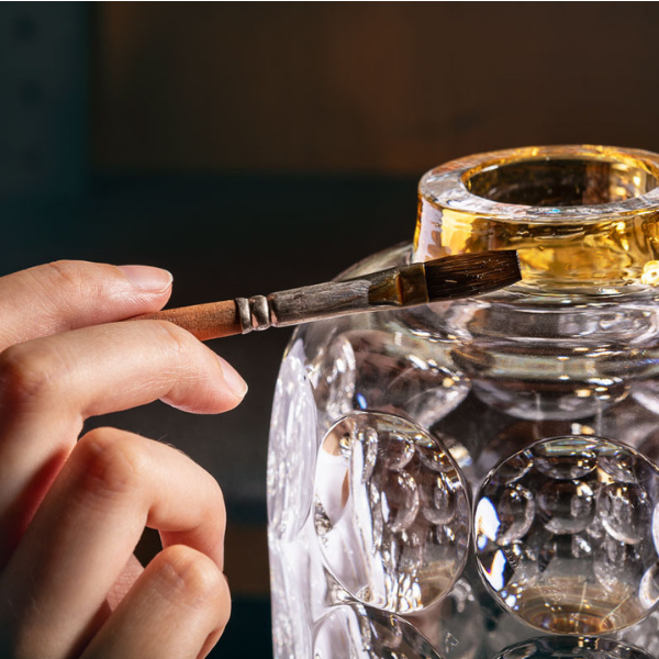 Ruční foukání skla je náročná, ale staletími prověřená metoda výroby křišťálu, která se ve sklárně Rückl dědí z generace na generaci. Každá sklenice, váza nebo šperkovnice je tedy jedinečná a obsahuje dotek opravdových mistrů sklářského řemesla.